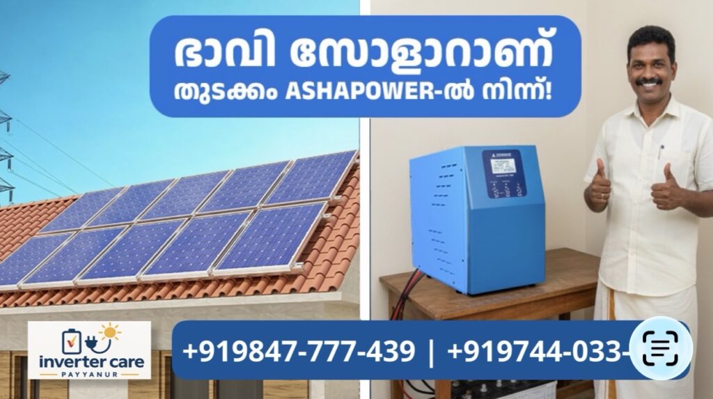 Inverter Care Payyanur is an authorized ASHAPOWER Off-Grid Solar PCU dealer providing sales, delivery, and professional installation services across Kannur Districts